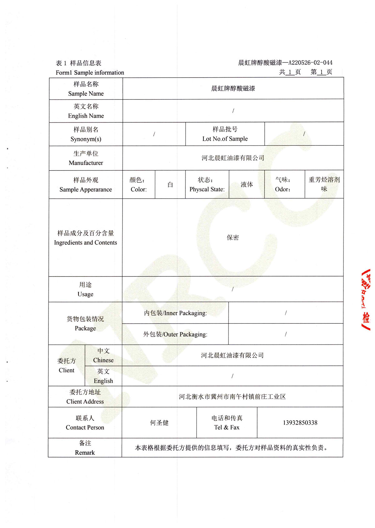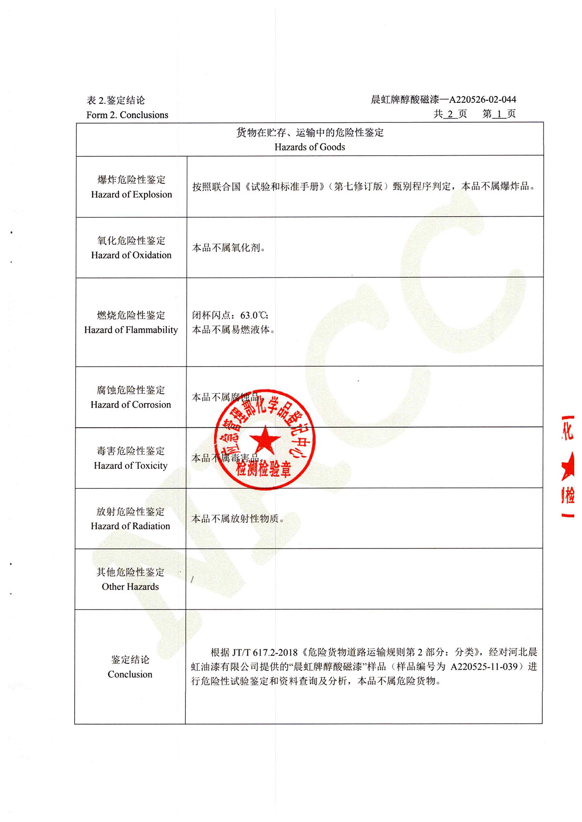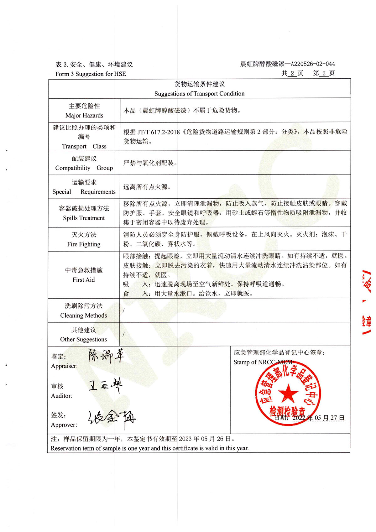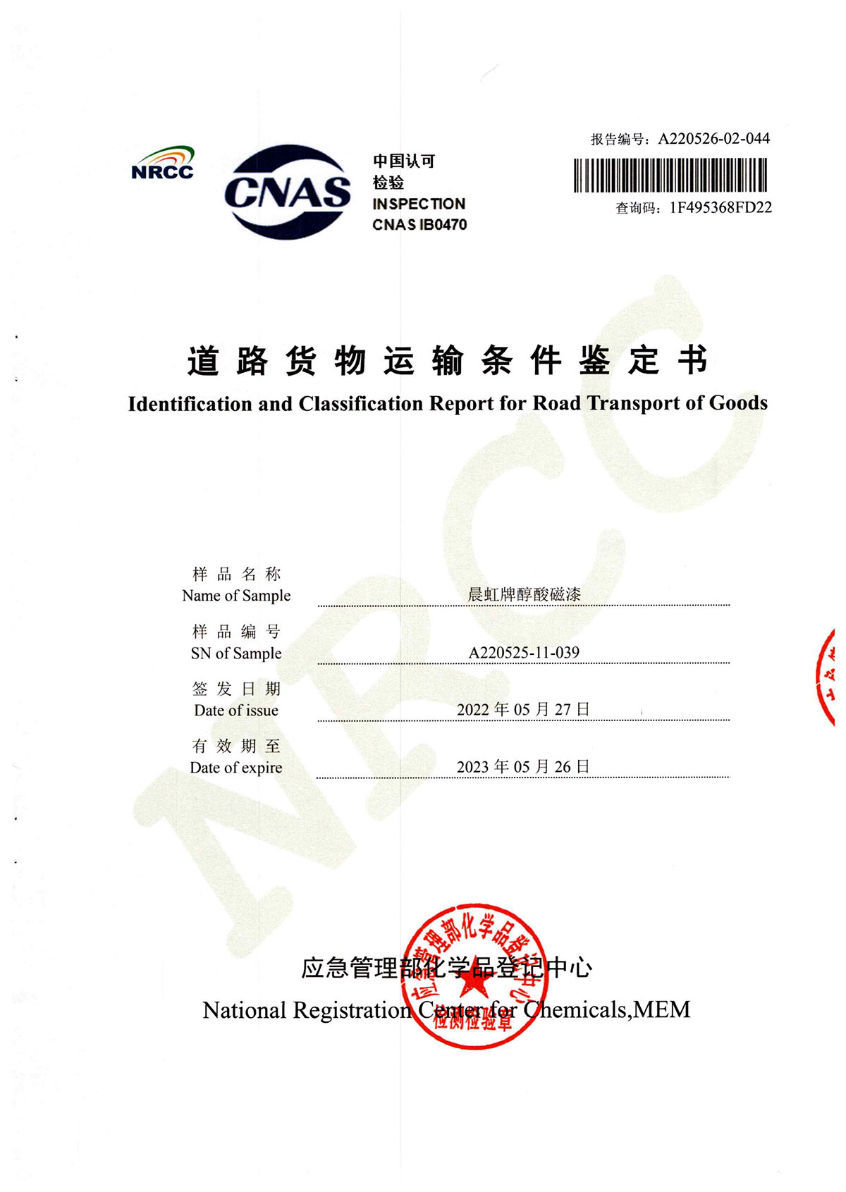晨虹醇酸磁漆道路貨物運輸鑒定書